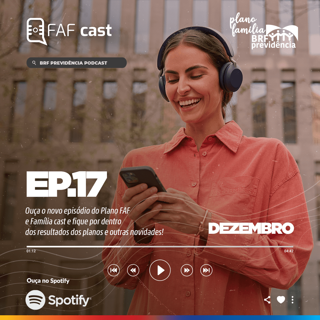 Já está no ar o 17º episódio do FAF cast, o podcast mensal do Plano FAF da BRF Previdência. Ele traz todos os detalhes sobre a rentabilidade do plano no mês de novembro, além de outros temas relevantes e do seu interesse.