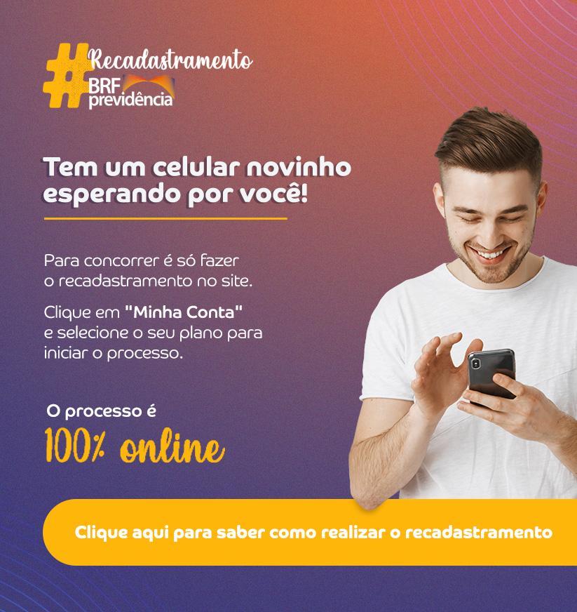 Faça o seu recadastramento na área de Autoatendimento do site: www.brfprevidencia.com.br e concorra a um celular novinho. Confira as informações a