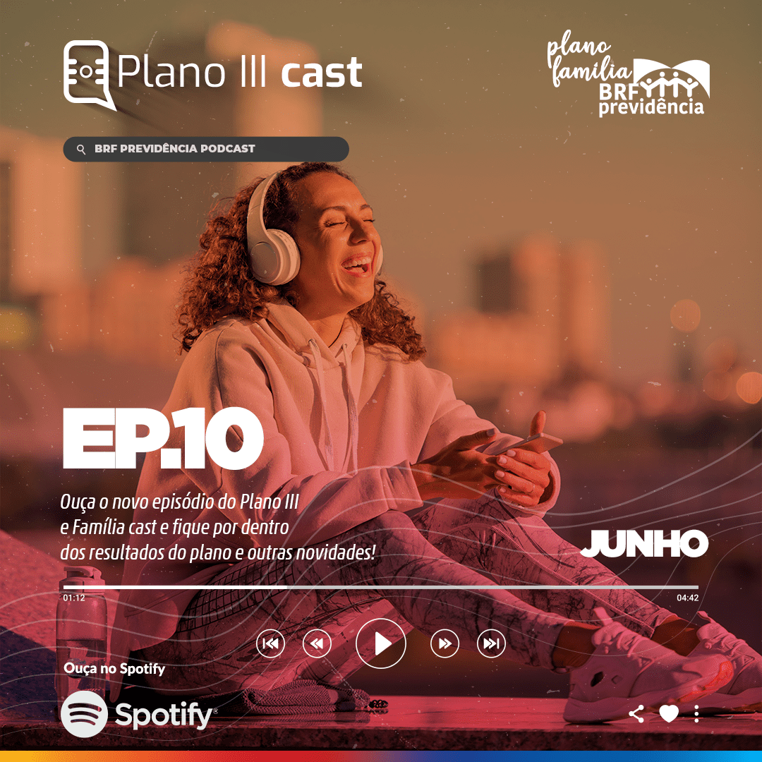 Já está no ar o décimo episódio do Plano III cast, o podcast mensal do Plano III da BRF Previdência. Neste episódio, nosso Gerente de Investimentos, André Jorge, faz um resumo dos resultados do plano no mês de maio, além de abordar outros importantes assuntos. A partir desta edição passaremos a contar também com todos os detalhes sobre o Plano Família.